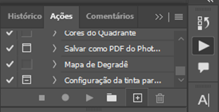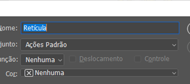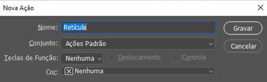 2 - Para facilitar o processo, caso seja necessário fazer retícula em mais de uma camada, é possivel criar uma ‘action’ . Na barra superior vai até ‘janelas’ e clique em ações, ou pelo atalho Alt+F9, ao abrir a janela de ações clique no + e inicie uma gravação, assim vai conseguir aplicar nas outras camadas o mesmo efeito, apenas com um clique.