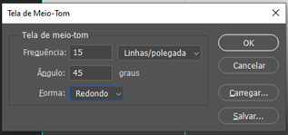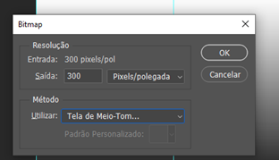 6 – Ao transformar a imagem em Bitmap, aceite achatar as camadas, deixe a Resolução em 300 dpi e em ‘Método’ utilize: Tela de Meio Tom.